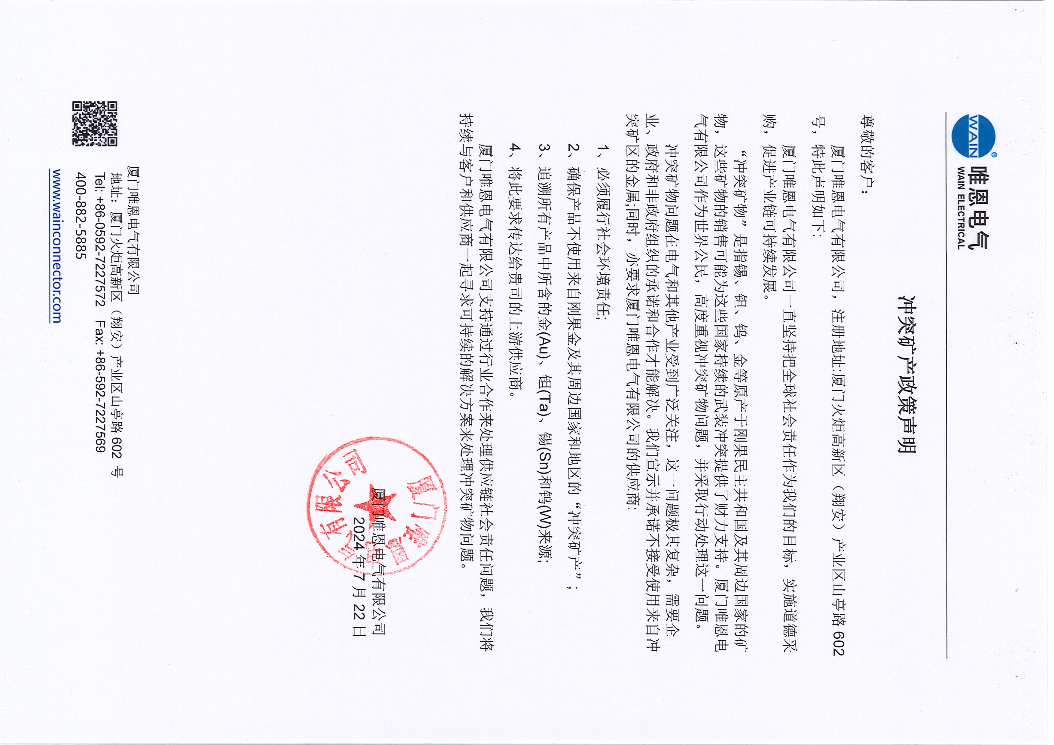 WAIN關(guān)于沖突礦物的聲明