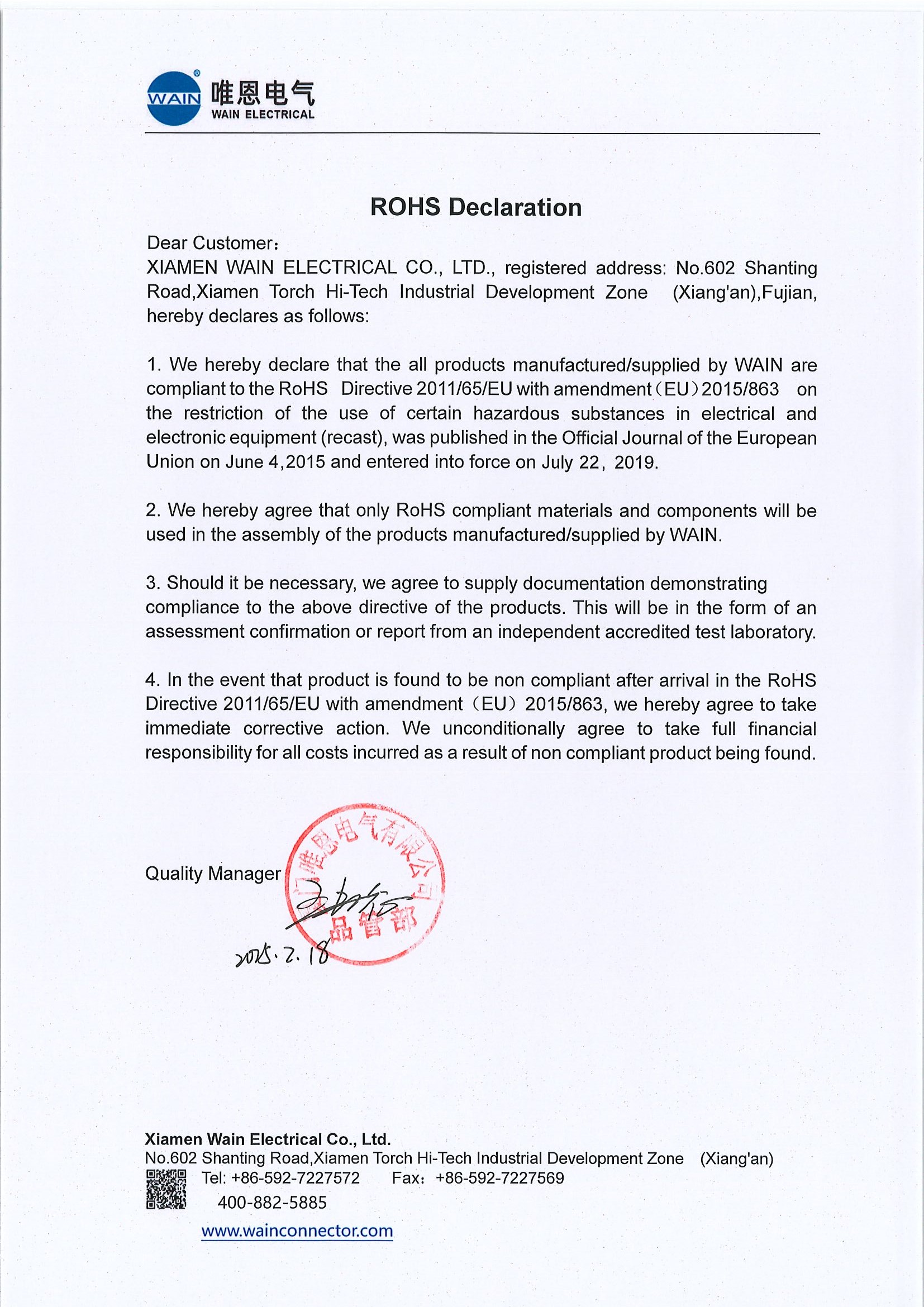 RoHS 合規(guī)聲明