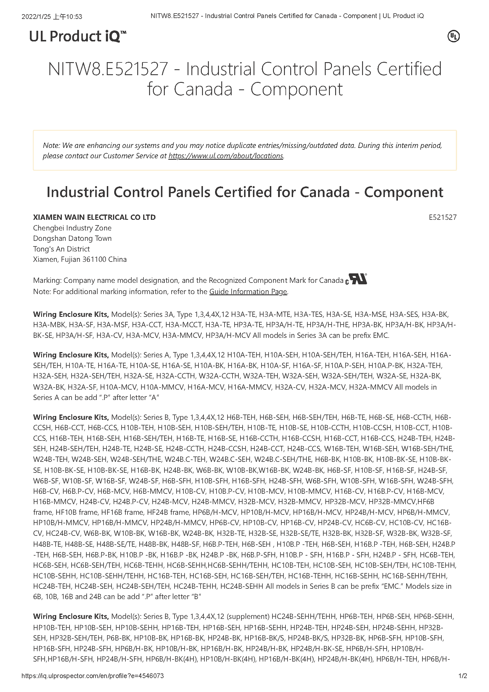 UL黃卡NITW2.E521527外殼