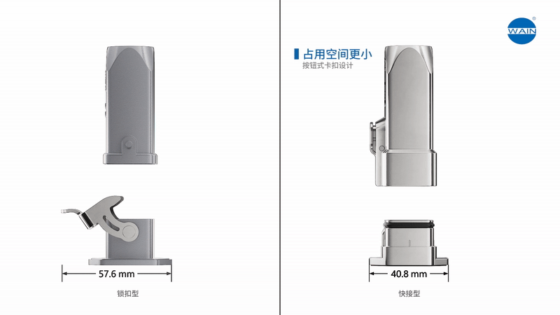 在機(jī)柜集成度飆升的智能制造時(shí)代,連接器空間占用已成為制約設(shè)備緊湊化的關(guān)鍵瓶頸。傳統(tǒng)鎖扣型外殼因解鎖位移需額外預(yù)留操作空間,導(dǎo)致機(jī)柜布線密度難以突破。WAIN快接型W3A金屬外殼通過彈簧輔助卡扣機(jī)構(gòu)與零外擴(kuò)解鎖設(shè)計(jì),實(shí)現(xiàn)安裝空間壓縮,為工業(yè)設(shè)備的高密度部署提供底層硬件支持。